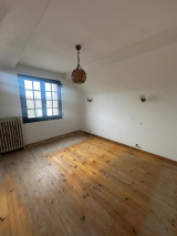 A l'étage: palier, 3 chambres dont une avec placard, salle de bains avec WC.