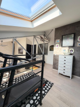 Dépendance de 43.9m² : entrée sur pièce principale, cuisine US, chambre avec mezzanine, salle de bains et WC.