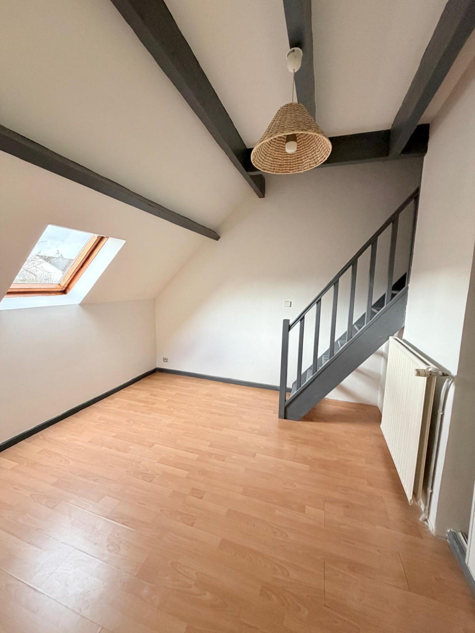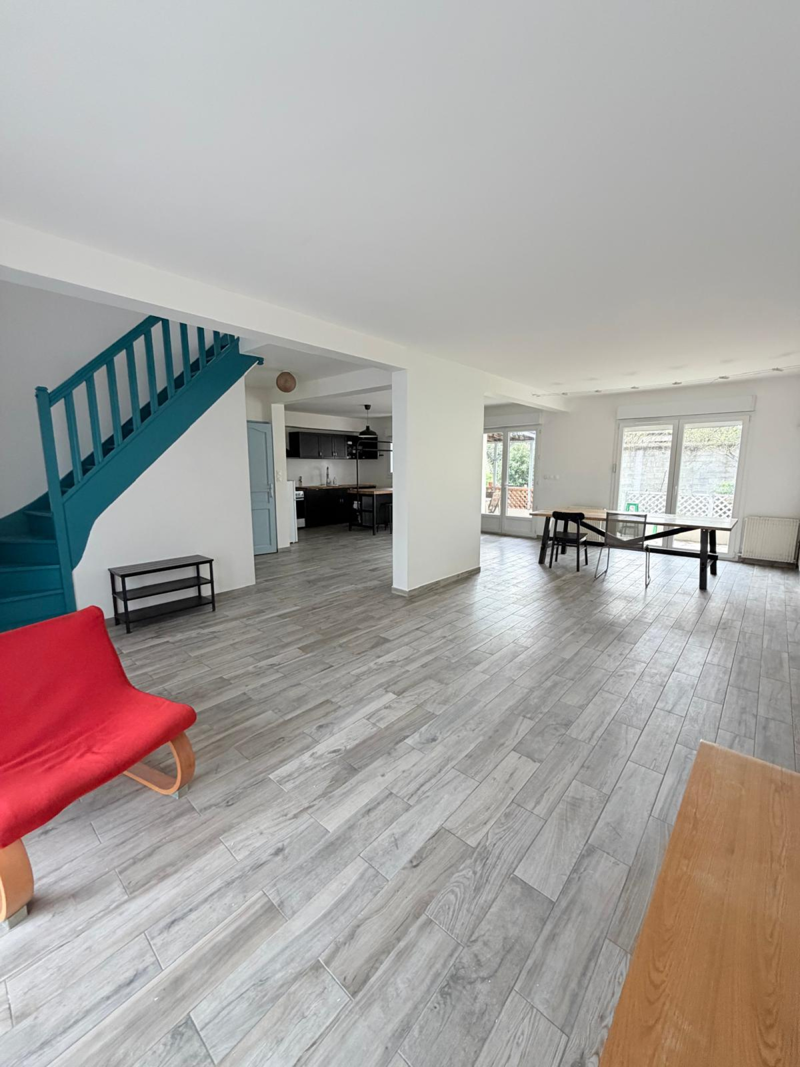 Au rez-de-chaussée: entrée sur cuisine ouverte sur séjour en L, chambre, salle d'eau et WC.